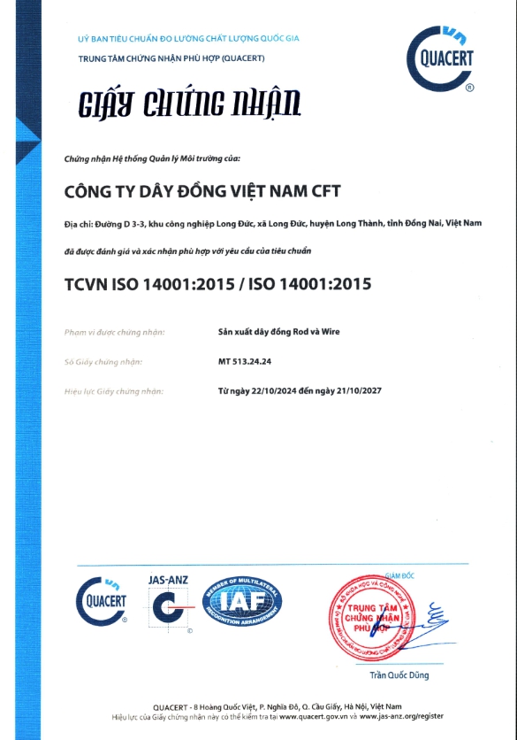 - Giấy Chứng nhận ISO 14001