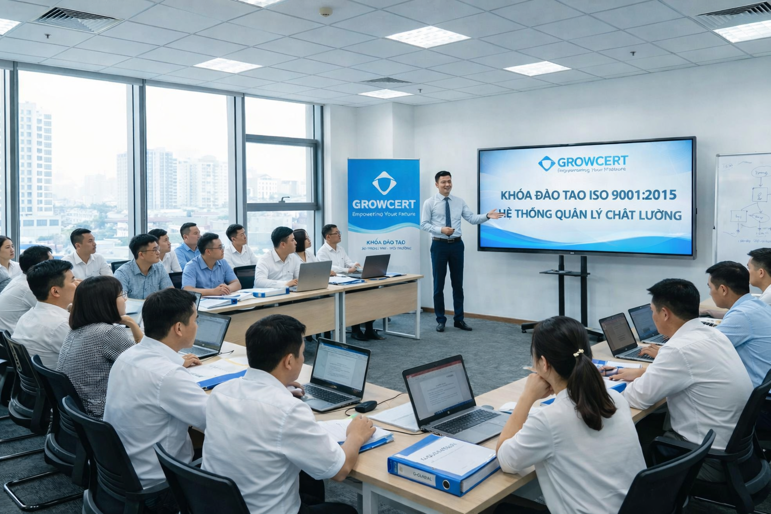 Khóa đào tạo ISO 9001:2015 của Growcert được thiết kế theo chuẩn chương trình quốc tế, giúp học viên hiểu rõ yêu cầu tiêu chuẩn, áp dụng hiệu quả vào quy trình vận hành thực tế và xây dựng văn hóa chất lượng bền vững.